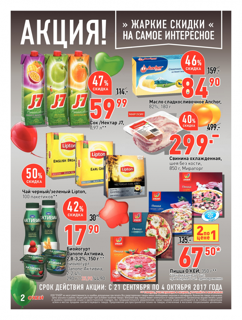 Срок действия акции: 21 сентября 2017 - 04 октября 2017